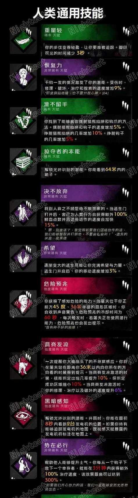 《黎明杀机》是一款以幽暗的恐怖背景为基础的生存游戏,玩家可以扮演不同的角色,体验猎杀或逃亡的刺激。每个角色都有独特的背景故事和技能,为游戏增添了更多的趣味和战略性。本文将详细介绍《黎明杀机》中所有人物的技能以及他们背后的故事情节。