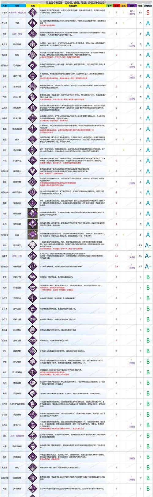 通过本文我们详细介绍了《黎明杀机》中所有人物的技能及背景故事,每个角色都拥有独特的特点和优势,玩家可以根据自己的喜好选择适合自己的角色进行游戏。愿您在《黎明杀机》的世界中尽情享受刺激和快乐!